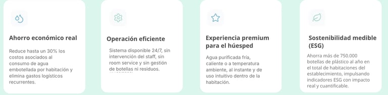 Eliminación de botellones, menos logística, menos residuos y espacios más organizados.